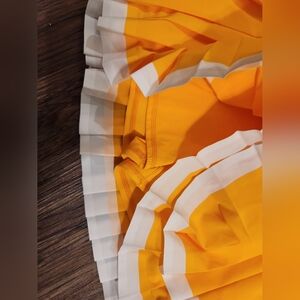 Brighten your wardrobe with this stylish pleated skirt. Featuring a vibrant yellow hue with a chic white trim, it's perfect for any occasion.