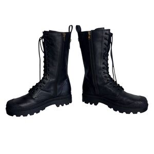 These are new without box and unworn. Stored indoors and never used. Originally designed as men’s boots in size 8, but they also work well for women seeking an oversized or combat-style fit.