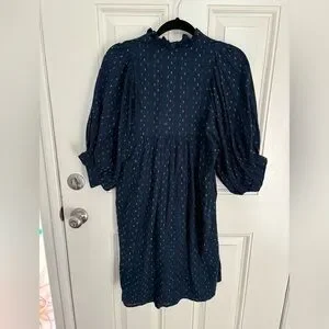 Never a Wallflower High Neck Dress Navy Swiss Dot Size Medium