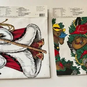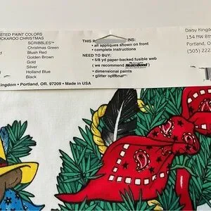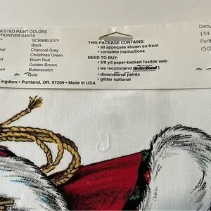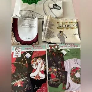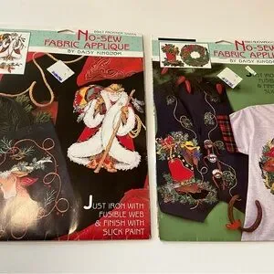 The product is a set of no-sew fabric appliques perfect for creating Christmas-themed projects like the Daisy Kingdom. Made of cotton, these iron-on appliques are easy to use and add an intricate design to your crafts. With a hobby and craft theme, these appliques are ideal for adding a festive touch to your home decor or handmade gifts. Whether you're a beginner or experienced crafter, these appliques are sure to inspire your next project with their charming designs. Sew and stuff Christmas swan and scare crow. Cut and sew Christmas apron and oven mitt. A blast from the past.