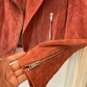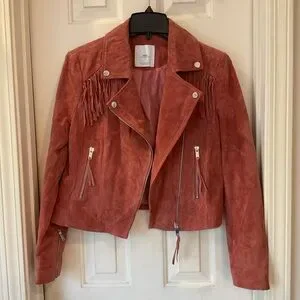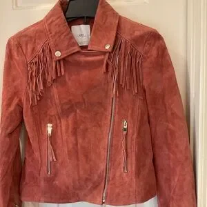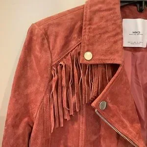 MNG Mango Leather biker fringed jacket with zipper detail, mauve color, Sz M