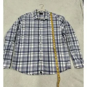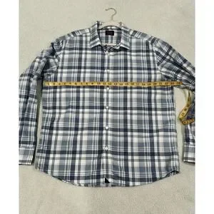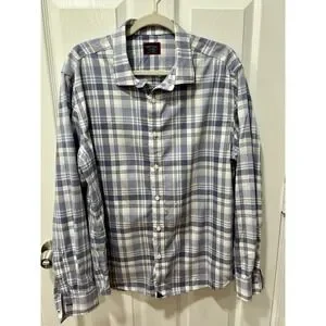 The UNTUCKit Dureza WF Men's XL Blue Gray White Plaid Long Sleeve Button Shirt