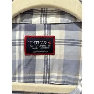 The blue, gray, and white plaid pattern adds a pop of interest to the outfit, while the long sleeves make it suitable for cooler weather. Created by the brand UNTUCKit, this shirt is sure to offer both style and comfort for any man's clothing collection.