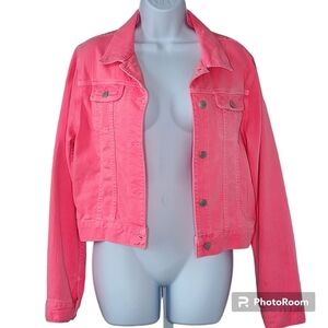 J Brand-Christopher Kane jacket denim neon pink-peach button front sz lrg 🎉 HP