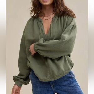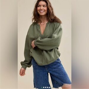 -Aerie Easy Street oversized olive pullover long sleeve sweatshirt