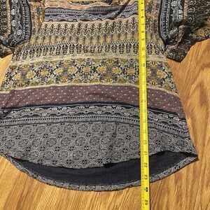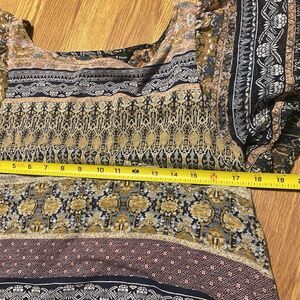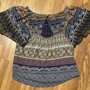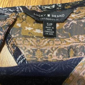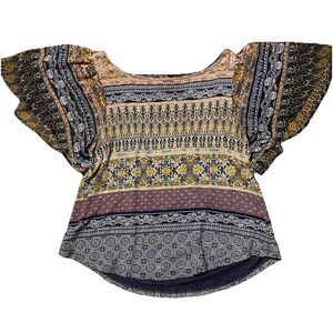 LUCKY BRAND Women's Blouse Top Small Boho Peasant Mixed Print Flutter Sleeve