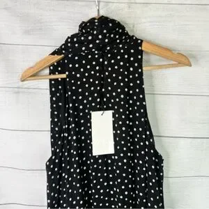 Zara ZW Collection Size Large Halter Polka Dot Sleeveless Midi Dress w/Scarf NEW