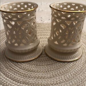 Elegant Lenox Cream Candle Holders with 24 Karat Gold Accents