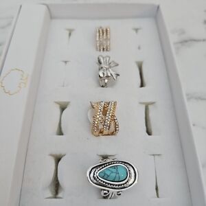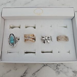 4 Pc Fashion Ring Set Gold Rinhestone Silver Bow Blue Southwestern Stone
