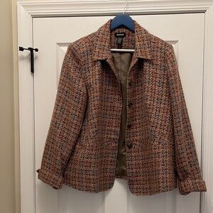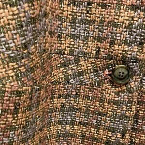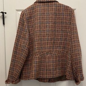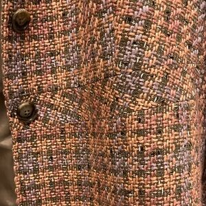 Stylish tweed blazer with a multicolor pattern. Perfect for any occasion.
