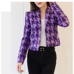 NWT $695 L'AGENCE Inez Houndstooth Pueple Blazer