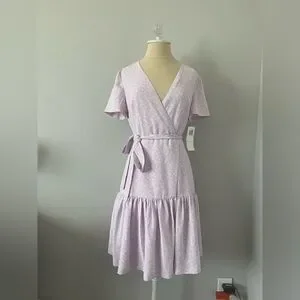 French Connection Mono Armoise Lavender Floral Wrap Mini Dress