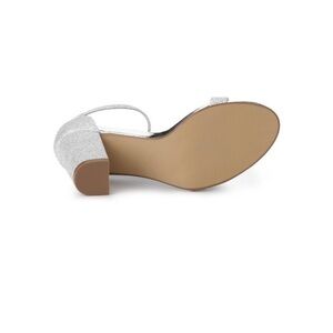 Silver Glitter Chunky Heel Ankle Strap Heels