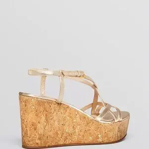Open Toe Platform Wedge Sandals , Metallic Pops against Cool Cork you will wear these every season !!!