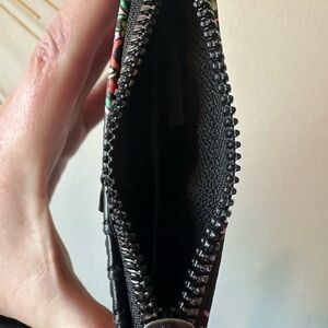Ed Hardy Black Card Holder Zipper Pouch with Skull and Floral Design NWT