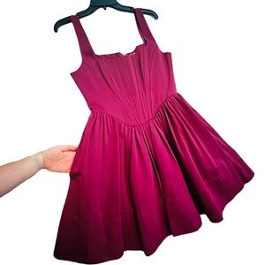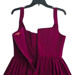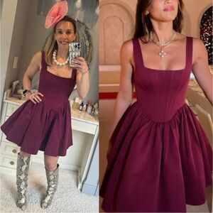 STAUD Landscape Corset Bodice Fit & Flare Mini Dress in Syrah Burgundy size 10