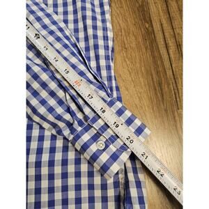 Very nice blue and white checked button down. This is in excellent condition and comes from a clean and smoke free home. Made of 100% cotton. Please see measurements in the photos.