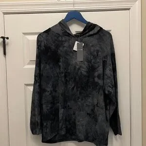 Stay stylish and comfortable with this black tie-dye hoodie. Perfect for casual outings and cozy days. Runs small. Can fit someone a 2X.