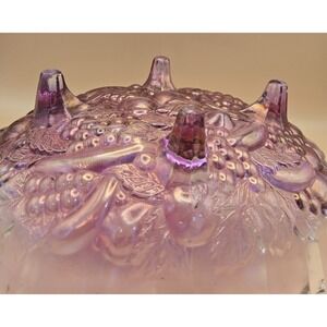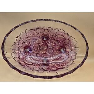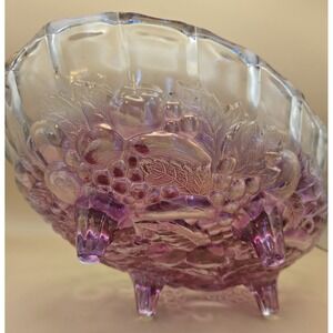 The Vintage Pink Indiana Glass Fruit Garland Footed Oval Bowl is a decorative piece made in America during the Mid-Century Modern era of the 1960s. This unique bowl features a glossy finish and a pressed glass production style, with a vintage pink color and floral pattern. It is a single piece serving bowl that is perfect for all occasions and can add a touch of retro charm to any space. Hand wash only to preserve its original beauty and maintain its vintage appeal.