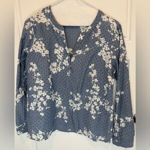 Talbots Petite Medium Blue and White Popover Top Tunic Shirt Lightweight Resort