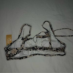 NWT KONA SOL Swim Bikini Top Women's Black with Pink Floral - Adjustable XL