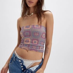 This sweet tube from Intimately is featured in a stretchy, open-knit style with a granny square-inspired print for the perfect dose of vintage charm.