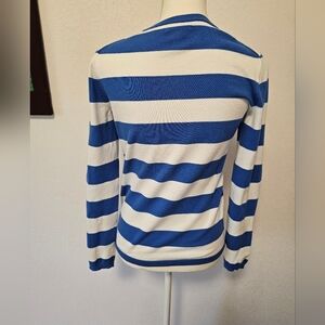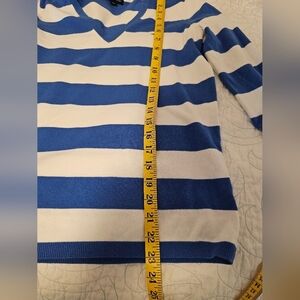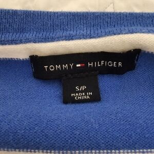 Tommy Hilfiger Blue and White Striped V-Neck Sweater Women's Size Small