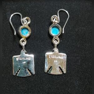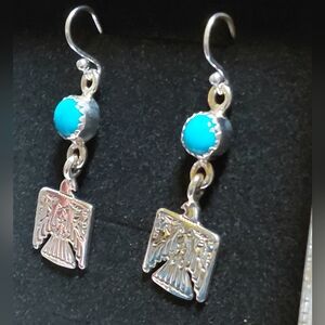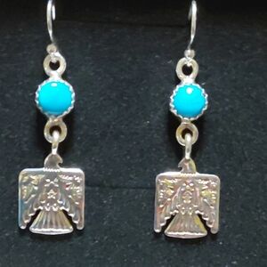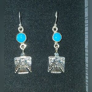 Elegant silver dangle earrings featuring vibrant turquoise stones. Perfect for adding a pop of color to any outfit.