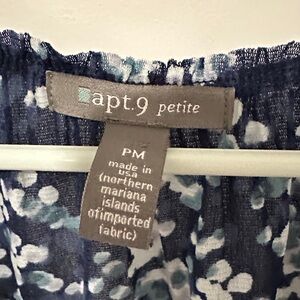 Apt. 9 Petite Blue and White Floral Patterned Blouse
