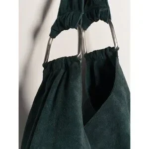 ▪ Features: Slouchy fit, stunning suede fabrication, defined metal buckle detailing at top, snap top closure, fully lined interior, interior zip pocket