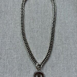 Dylanlex silver chain necklace featuring a rhinestone encrusted pendant.