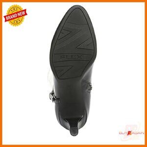 Style: Knee-high boot with wraparound strap and buckle detail