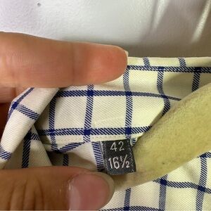 White and navy blue plaid windowpane pattern dress shirt, great used condition.
