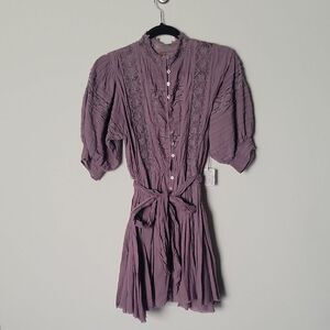 NWT Free People Sydney Dress XS Mini Plum Purple Boho Lace Embroidered Crochet