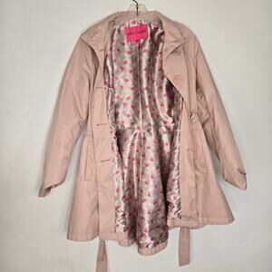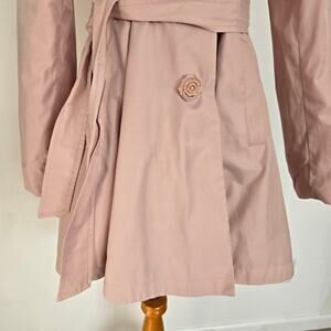 Betsey Johnson Women Soft Girl Pink Trench Coat Rose Buttons Flared Skirt Medium