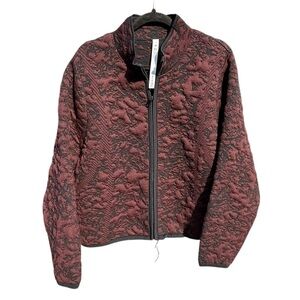 Lululemon Jacquard Wool Blend Burgundy Quilted Bomber Zip Up Jacket Size 12 NWT