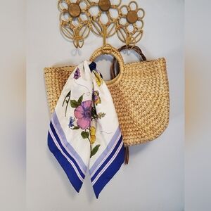 Light woven, organic modern handmade tote with stunning floral butterfly scarf, boho chic