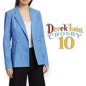 DEREK LAM 10 CROSBY Rodeo Double-Breasted Stretch-Cotton Light Blue Denim Blazer