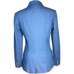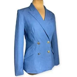 Double-Breasted Stretch-Cotton Light Blue Denim Blazer