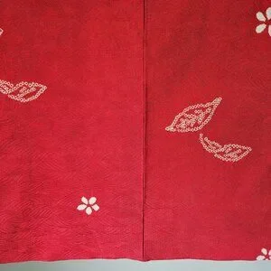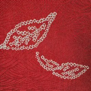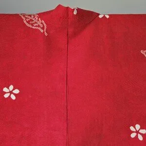 Vintage Red Silk Kimono Jacket: Jacquard Shibori Haori H1526
