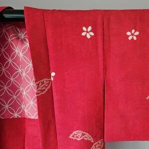 Japanese Silk Kimono Jacket - Silk Kimono Jacket - Red Jacquard & Shibori Silk H1526