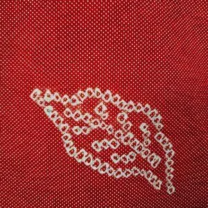 Cheerful red silk with white pin dots and a wavy jacquard weave.