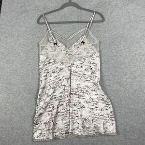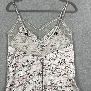 Victorias Secret Satin Script Mini Slip Dress Womens M Lace Trim Lingerie