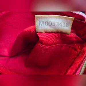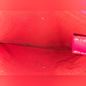 The call outs are the original wristlet strap is broken so it has been replaced with an unbranded one, the original logo on the front is worn down and the outside leather needs a light wipe down. This is shown in the photos above.