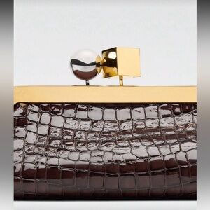 Elevate your style with this chic dark brown wristlet, featuring a stunning crocodile-embossed design. Ideal for any occasion, it effortlessly complements your ensemble.