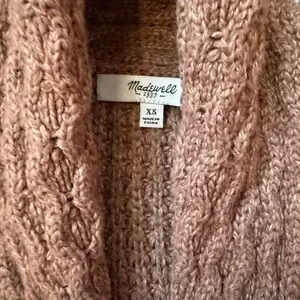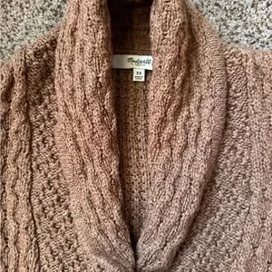 Chic cable knit cardigan with shawl collar. Features front pockets for added style. Madewell size XS. Fits true to size. Smoke free home.