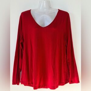 Soma Red V-Neck Long Sleeve Ultra Soft Stretchy Top Women size L Comfy