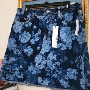 Floral Jean Skirt Above The Knee Casual Skirt Cottagecore Summer Vacation Large