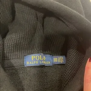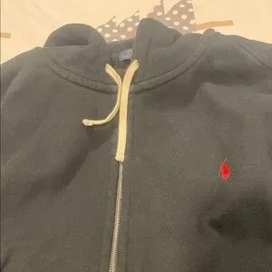 Polo Comfortable black zip-up hoodie with matching sweatpants. Features a small red logo on the chest.