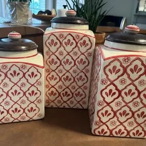Sundance Red and Cream Ceramic Canister*** 1 of 3 only